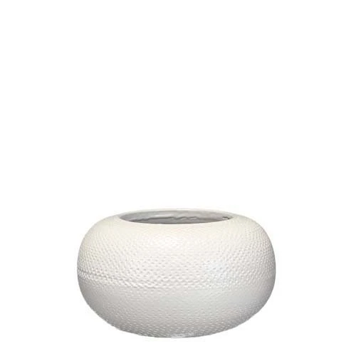 De gedetailleerde afwerking en de subtiele glans maken de serie Gabriel tot favoriet. Deze keramieken plantenschaal komt uit Portugal, waar deze door authentieke pottenbakkers met de hand wordt gevormd en afgewerkt. En dat is te zien! Ieder artikel is uniek en valt op door het natuurlijk aangebrachte reliëf patroon en de licht glanzende finish. Daarnaast past de schaal door de neutrale, witte kleur in elk interieur. De Gabriel serie bestaat uit potten, vazen en schalen in verschillende kleuren en maten die mooi met elkaar te combineren zijn. Deze schaal is 13 cm hoog, heeft een diameter van 23 cm en is uitgevoerd in het wit.